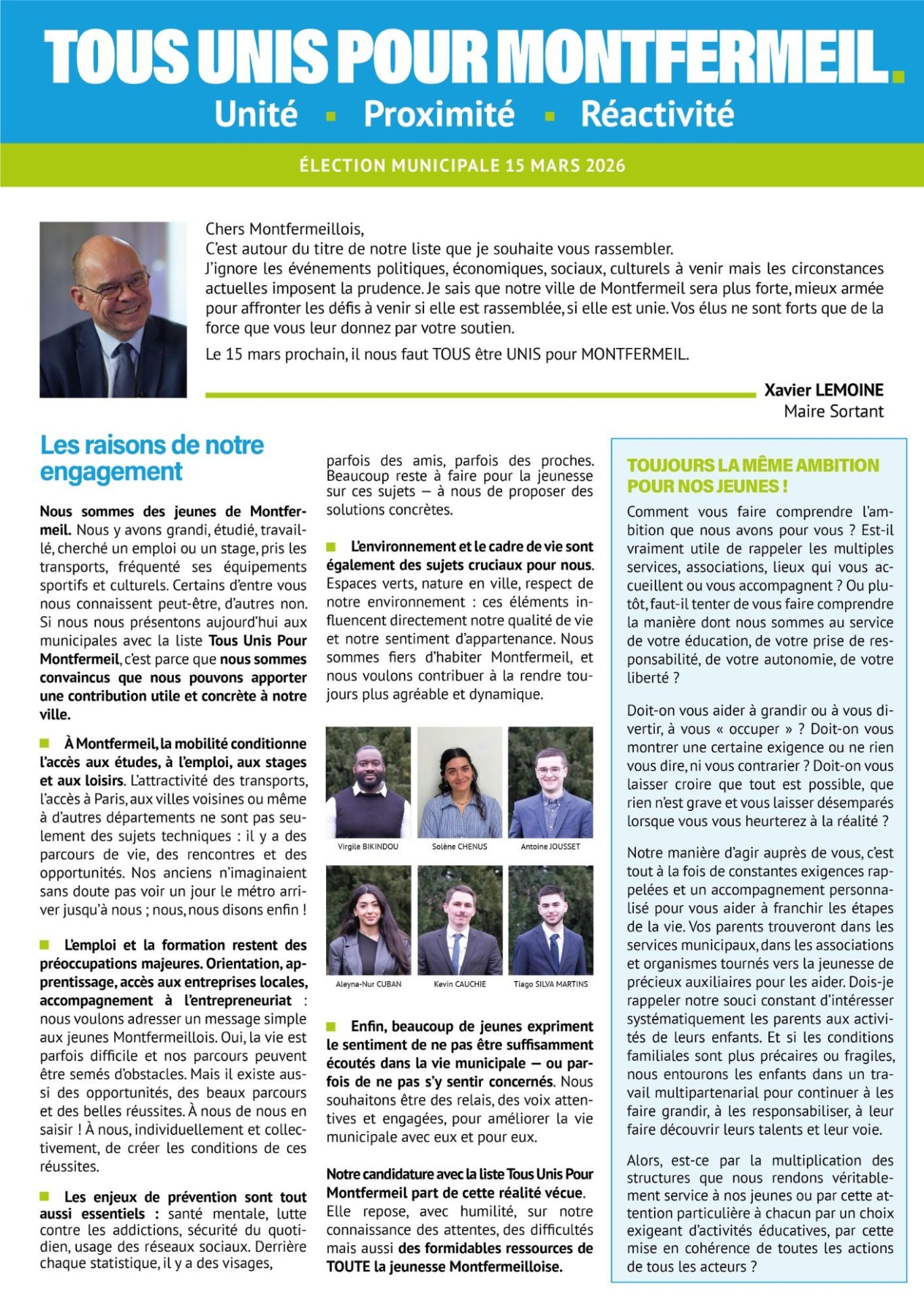 Le 15 mars prochain, il nous faut TOUS être UNIS pour MONTFERMEIL.